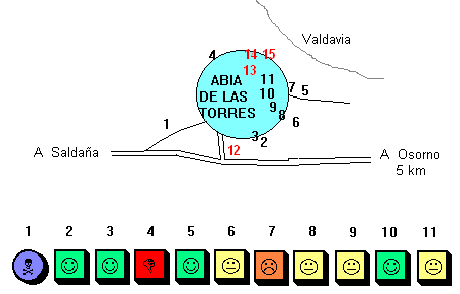 restos; 5, regular; 6, desaparecido; 7, ruinas; 8, ruinas; 9, regular; 10,