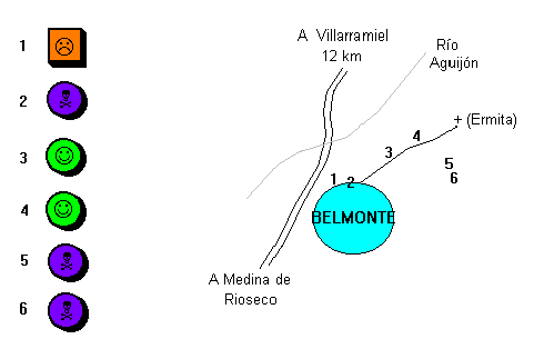 desaparecido; 2, restos; 3, bueno; 4, regular; 5, restos; 6,