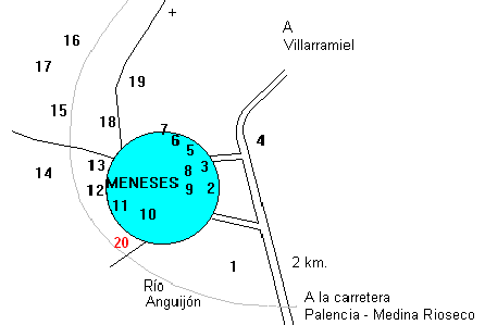 8, restos; 9, malo; 10, restos; 11, malo; 12, ruinas; 13, malo; 14, bueno; 15,