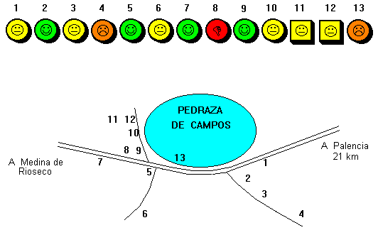 regular; 8, restos; 9, ruinas; 10, ruinas; 11, bueno; 12, bueno; 13,