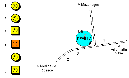 regular; 2, regular; 3, malo; 4, restos; 5, malo; 6, ruinas; 7, restos.