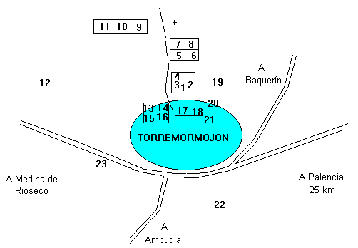 ruinas; 8, ruinas; 9, ruinas; 10, bueno; 11, regular; 12, restos; 13, bueno;