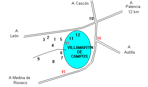 restos; 8, ruinas; 9, bueno; 10, desaparecido; 11, regular; 12, bueno; 13, bueno; 14, bueno; 15, bueno.
